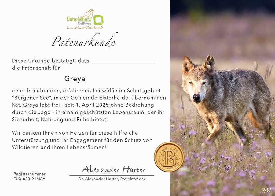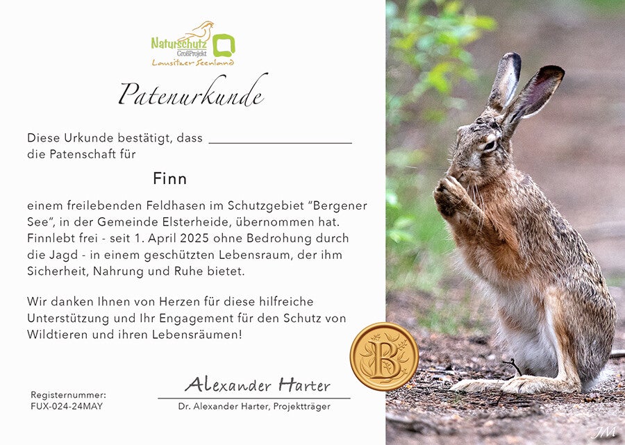 Werde "WILDES LEBEN" Pate. Schon 25 Euro im Quartal (100 Euro im Jahr) helfen den Schutzraum für Wildtiere zu bewahren und das Monitoring umzusetzen.